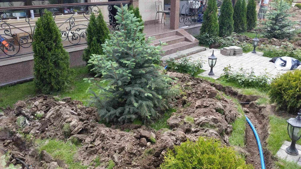 Обустройство системы полива участка, как и любой технический проект, начинается с замеров участка и выполнения плана с учетом масштаба, точно учитывающего расположение зеленых насаждений и элементов садового дизайна — дорожек, беседок, скамеек. Затем на план наносится непосредственно схема автоматического полива, включающая элементы и дождевального, и капельного вида ирригации для разных видов растений. Расчет объема воды, требуемого для устройства автополива газонов своими руками, индивидуален для каждого дачного участка. Здесь основной критерий – тип грунта. Тяжелые глинистые почвы плохо впитывают влагу, а песчаные — не задерживают ее вообще. В среднем для нормального увлажнения газона нужно от 4 до 8 литров воды на м2., в зависимости от времени года. На основе показателей давления и расхода воды рассчитывается пропускная способность трубопроводов, и начинать нужно с магистральной, подающей трубы. В подавляющем числе случаев, для устройства автоматического полива на дачных участках используются полиэтиленовые трубы диаметром от 25 до 40 мм. Они долговечны в эксплуатации и легко монтируются с помощью самозажимных фитингов. Но чтобы снизить потери давления в системе, следует прокладывать трубы к дождевателям самым коротким путем, по возможности исключая изгибы и повороты. Капельные шланги, как и диаметр труб, подбираются в зависимости от их пропускной способности, а разбрызгиватели – из расчета необходимой дальности и конфигурации водяной струи. К тому же, роторные оросители лучше продублировать – это исключит образование слепых зон при поливе. Для каждой ветки трубопровода в общей системе полива потребуется отдельный электромагнитный клапан. И для удобства в обслуживании их лучше размещать компактно, вблизи точки разветвления труб. Управляющий системой контроллер подбирается по способности управлять нужным количеством клапанов, а также обязательно совместимый по типу с датчиками осадков, отключающими полив в дождливую погоду. Далее процесс проектирования полива газона продолжается расчетом потребности необходимого для монтажа объема материалов и комплектующих элементов.